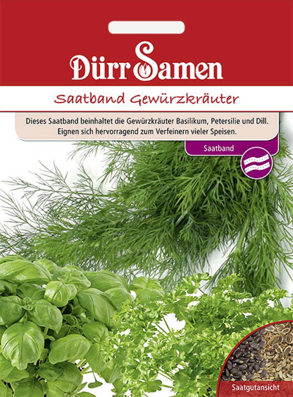 Dürr Samen Bande de Semis Herbes Aromatiques (Basilic, Aneth, Persil)