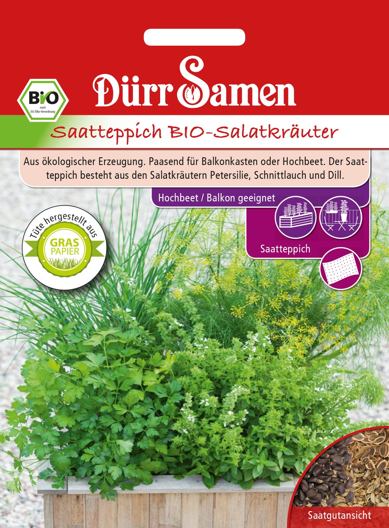 Dürr Samen Tapis de Semis Bio - Herbes Aromatiques pour Salade (Potager Surélevé & Balcon)