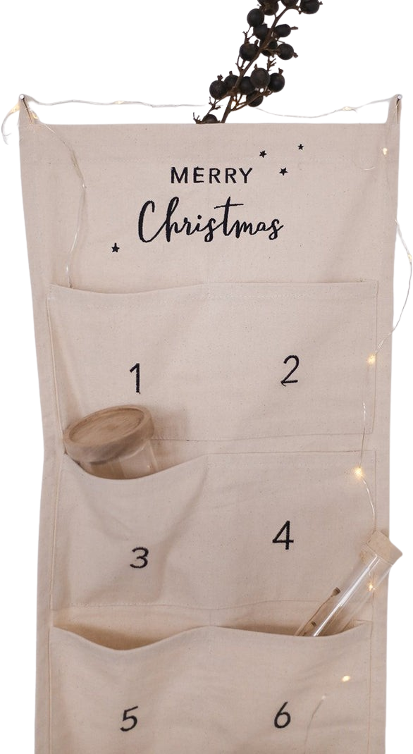 Contenu : Calendrier de l’Avent vide (la décoration, la guirlande lumineuse, les suspensions et la branche ne sont pas inclus)