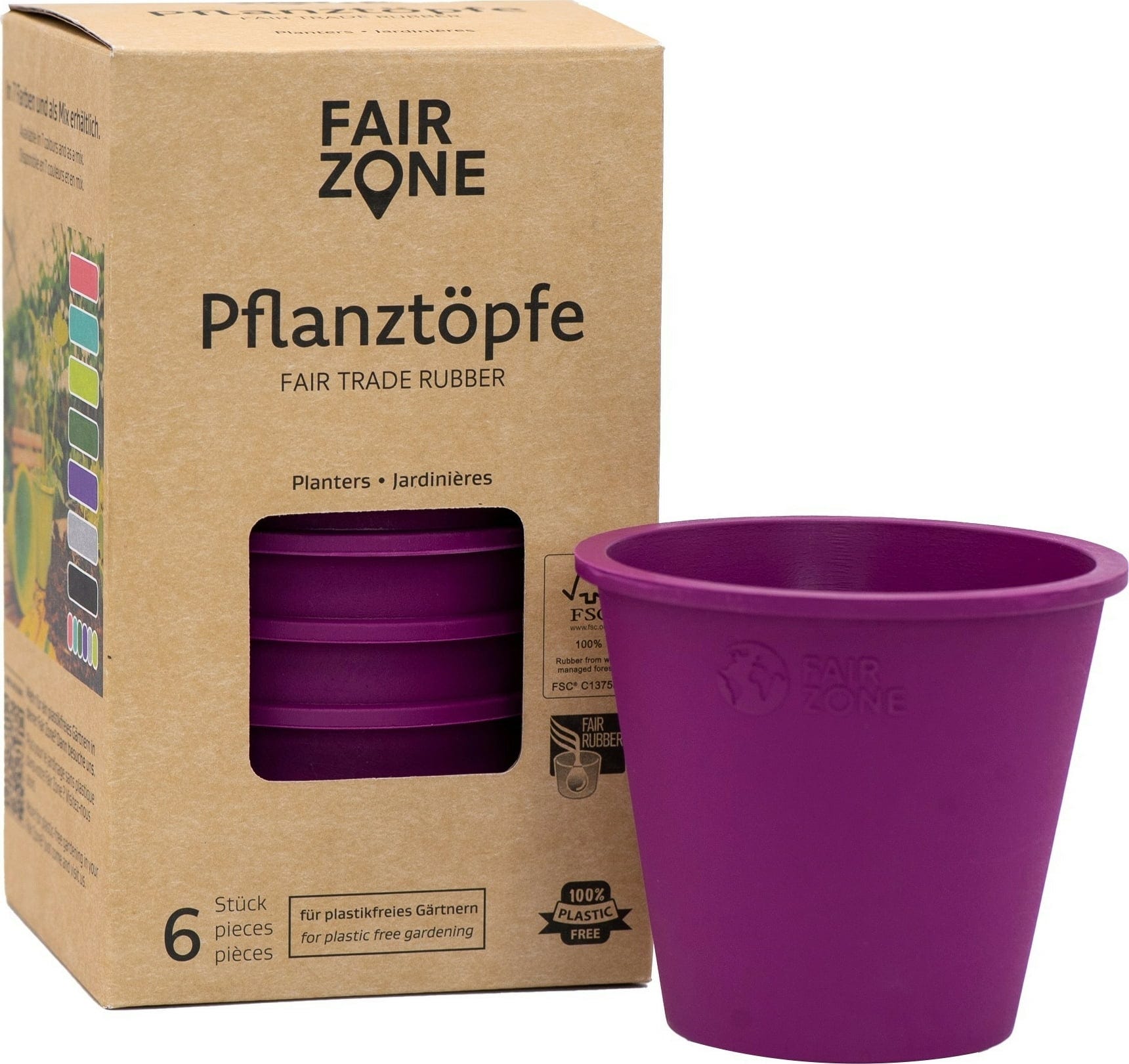 FAIR ZONE Pots de Fleurs en Caoutchouc Naturel - Lot de 6, Dark Purple