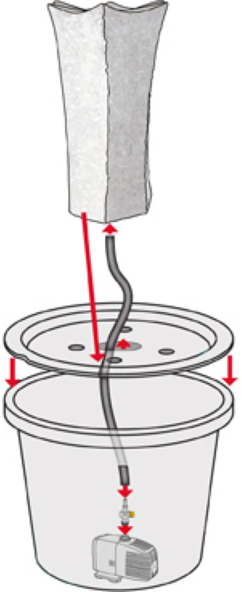 4. Insérer les tuyaux dans les ouvertures prévues de l’élément de fontaine