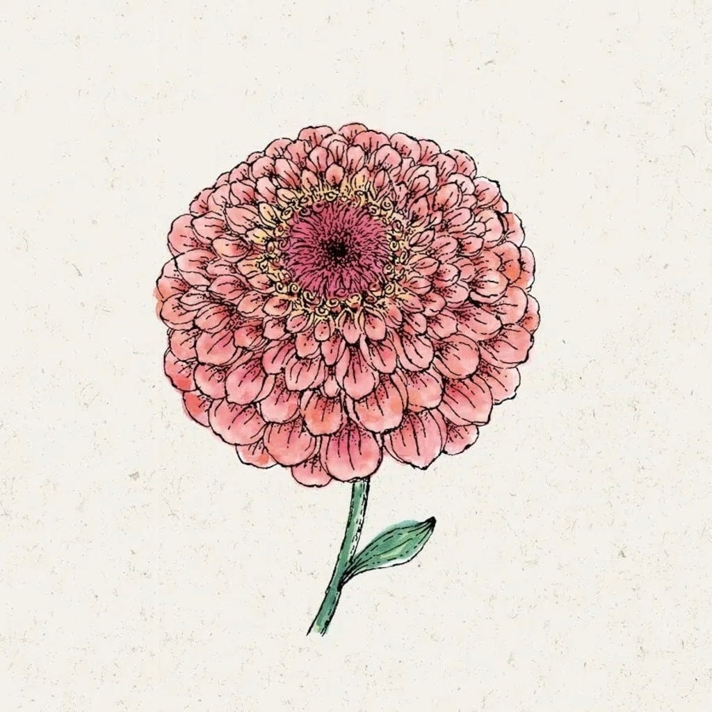 Jora Dahl Zinnia elegans "Benary"s Giant Salmon Rose" (Zinnia Élégante)