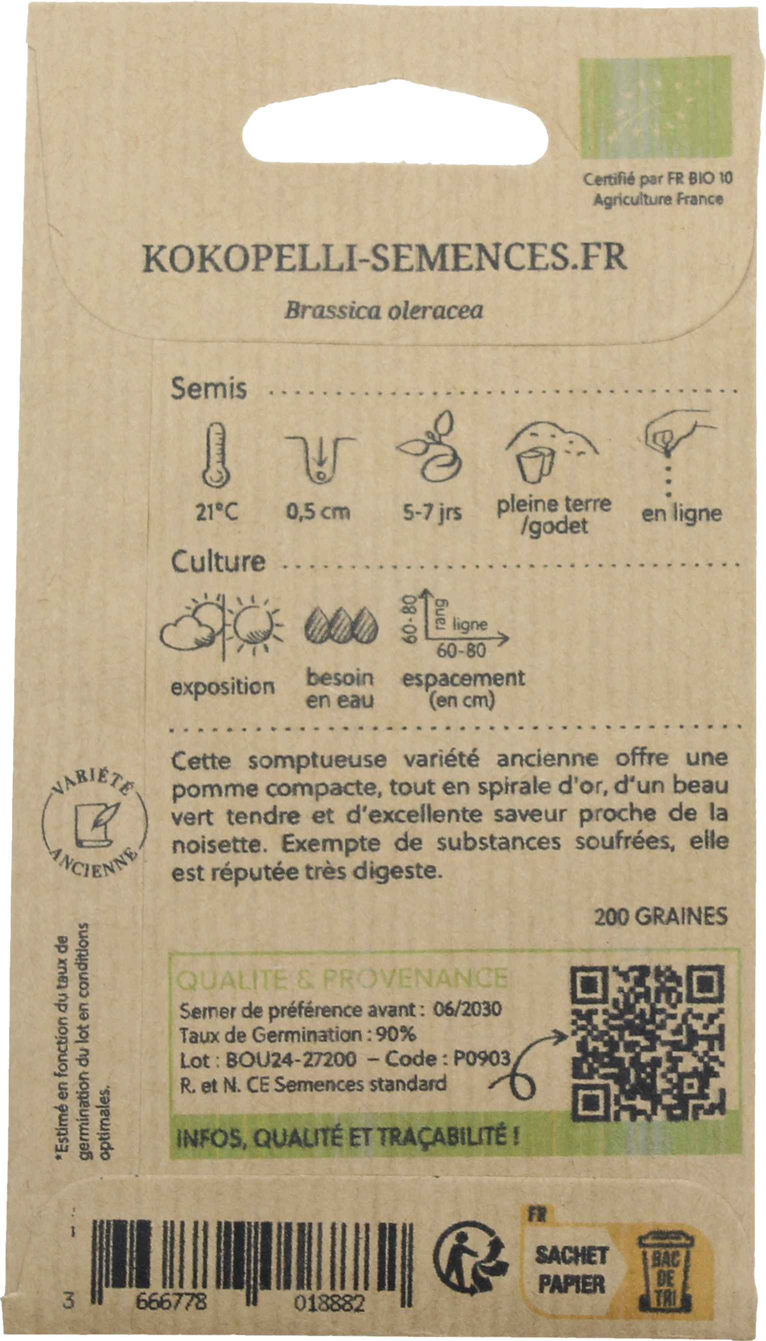 | Fabricant: | Association Kokopelli, 7 Route de Sabarat, Foret de Castagnes, 09290, Le Mas D'Azil, France, professionnels@kokopelli-semences.fr, www.kokopelli-semences.fr |