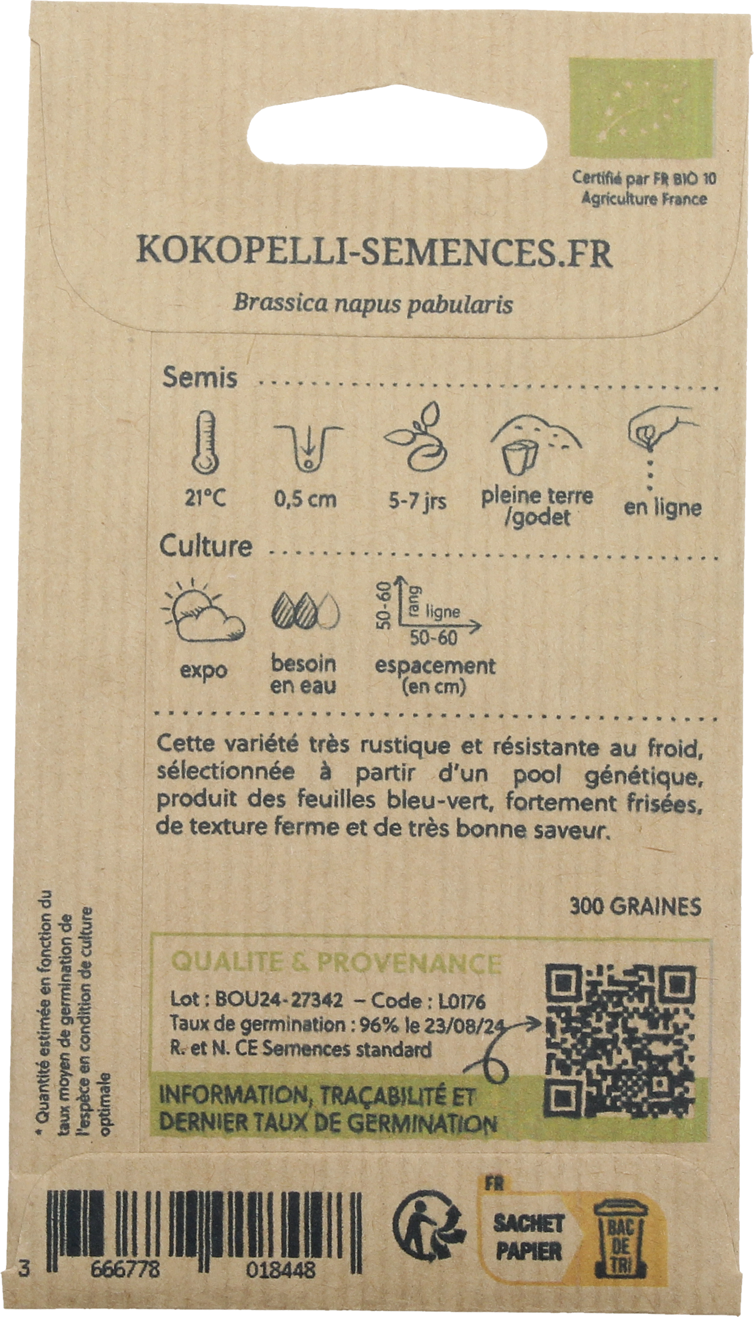 | Fabricant: | Association Kokopelli, 7 Route de Sabarat, Foret de Castagnes, 09290, Le Mas D'Azil, France, professionnels@kokopelli-semences.fr, www.kokopelli-semences.fr |