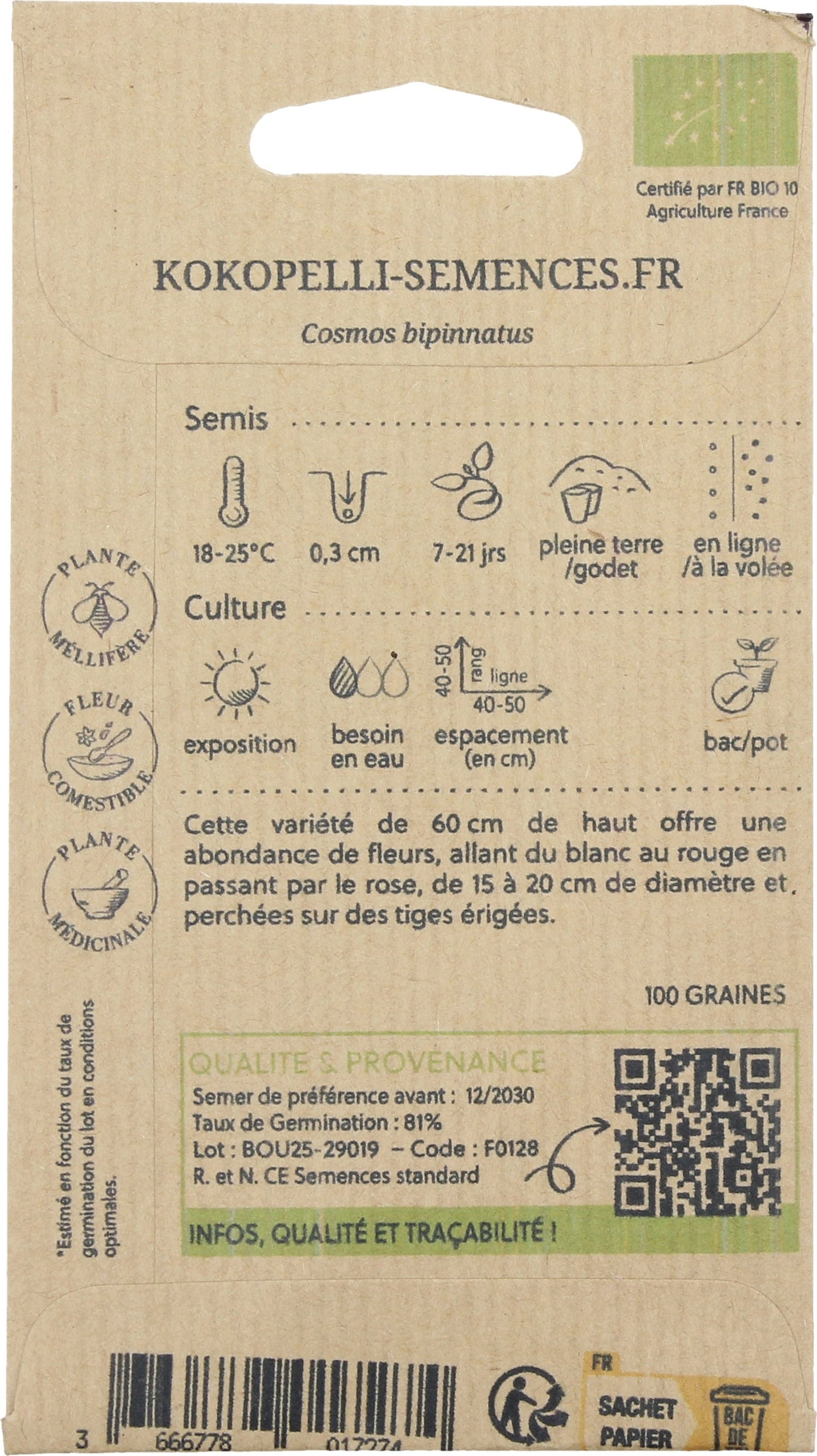 avis en français à propos du produit Kokopelli Cosmos "Sensation" Bio