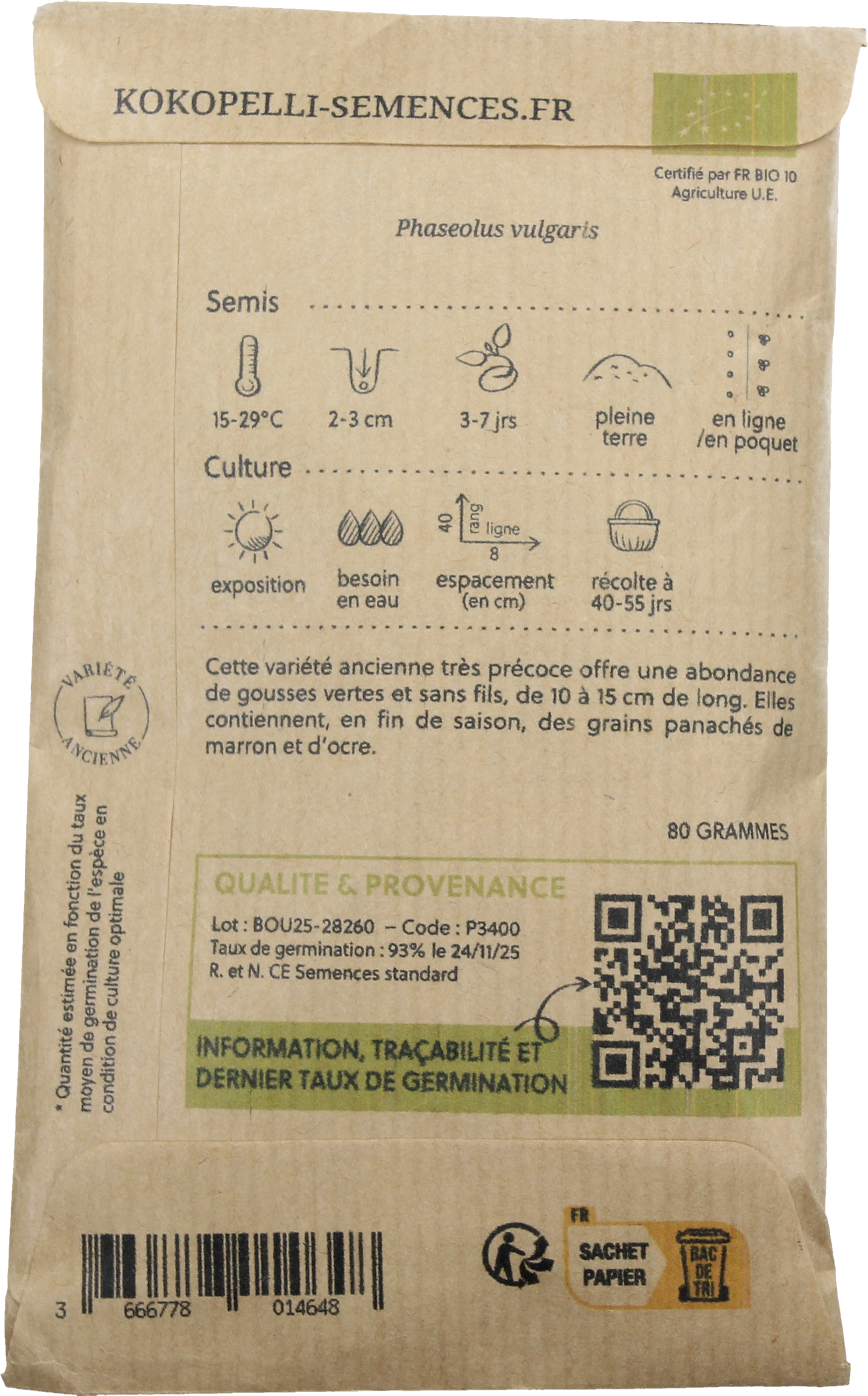 avis en français à propos du produit Kokopelli Haricot Nain Bio "Contender"
