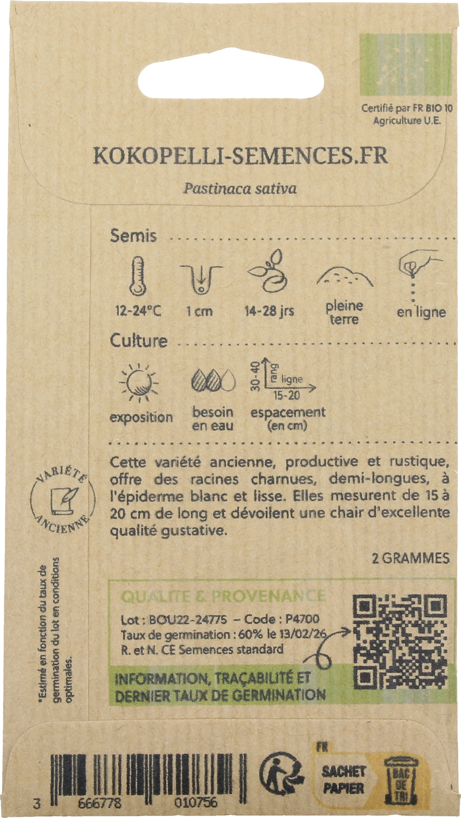 avis en français à propos du produit Kokopelli Panais Bio "Guernsey"