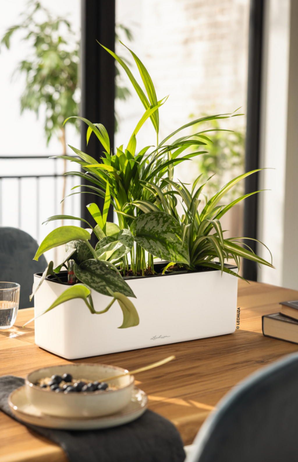 Cette jardinière allongée accueille élégamment trois plantes dans votre intérieur. Herbes aromatiques sur le rebord de la fenêtre, succulentes sur une étagère du salon ou plantes fleuries en décoration de table : elle met vos plantes en valeur et apporte une touche moderne et décorative à votre espace.