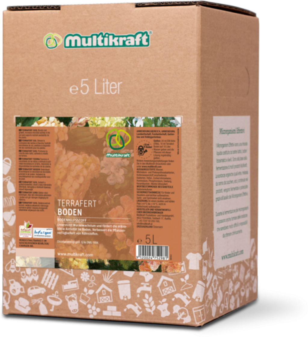 Terrafert Sol est un complément pour amender le sol et favoriser ainsi l'enracinement et la croissance des plantes, des arbres et des arbustes. Tel un maillon entre les racines et l'engrais, il assure une meilleure absorption des nutriments par les plantes. Une utilisation régulière est récompensée par une abondance de micro-organismes efficaces dans le sol, ce qui représente une source de nourriture et des conditions idéales pour attirer les vers de terre et autres organismes utiles.