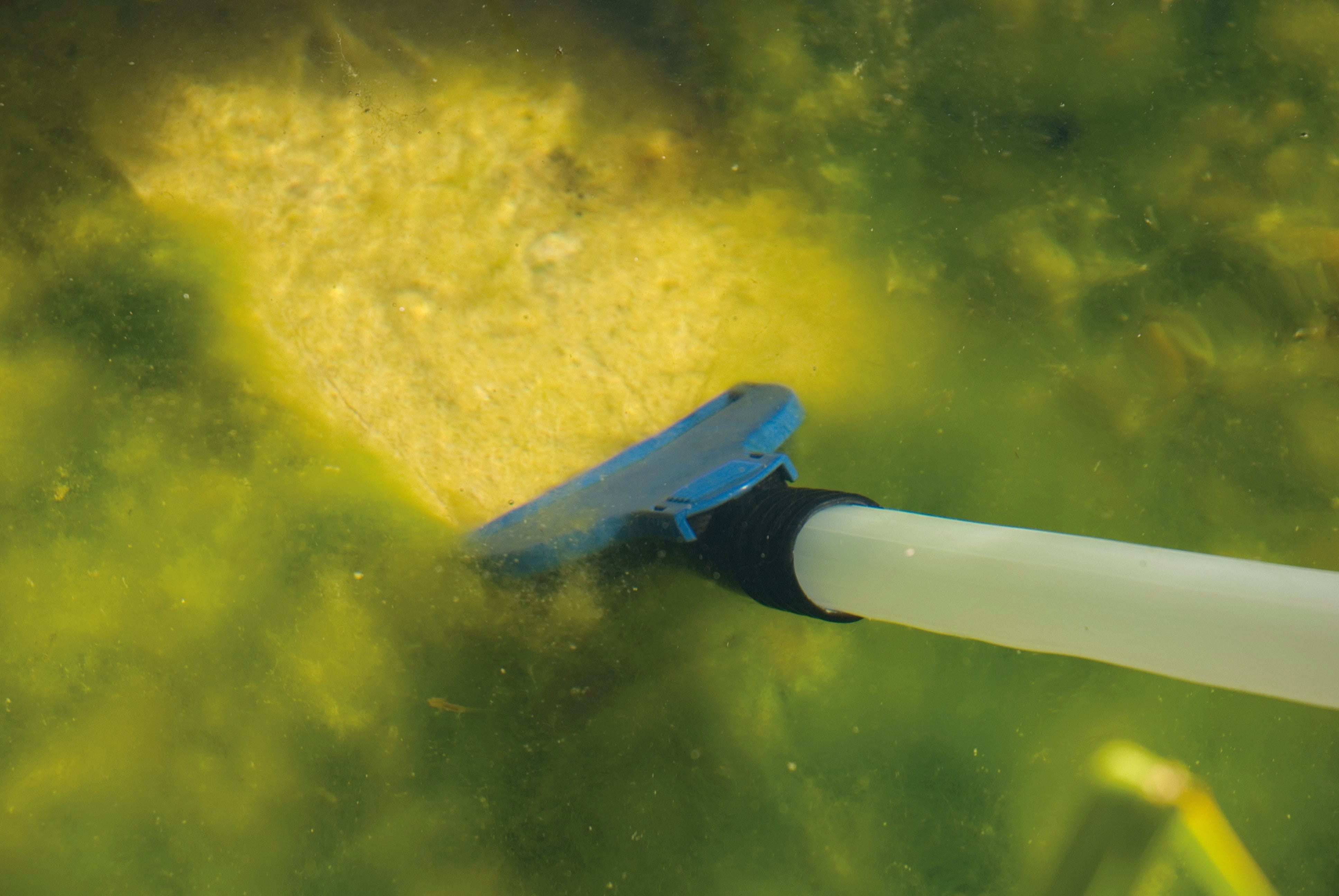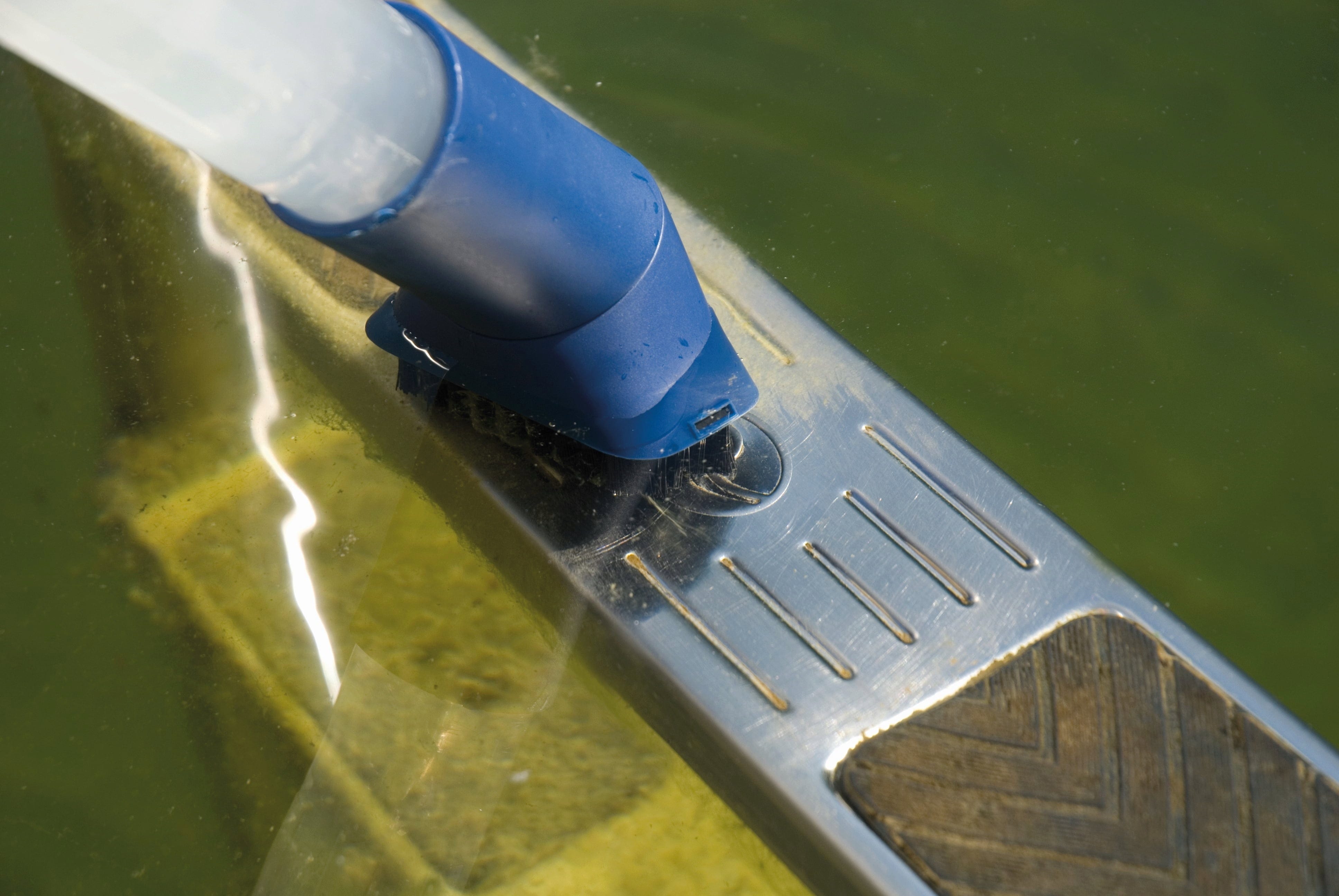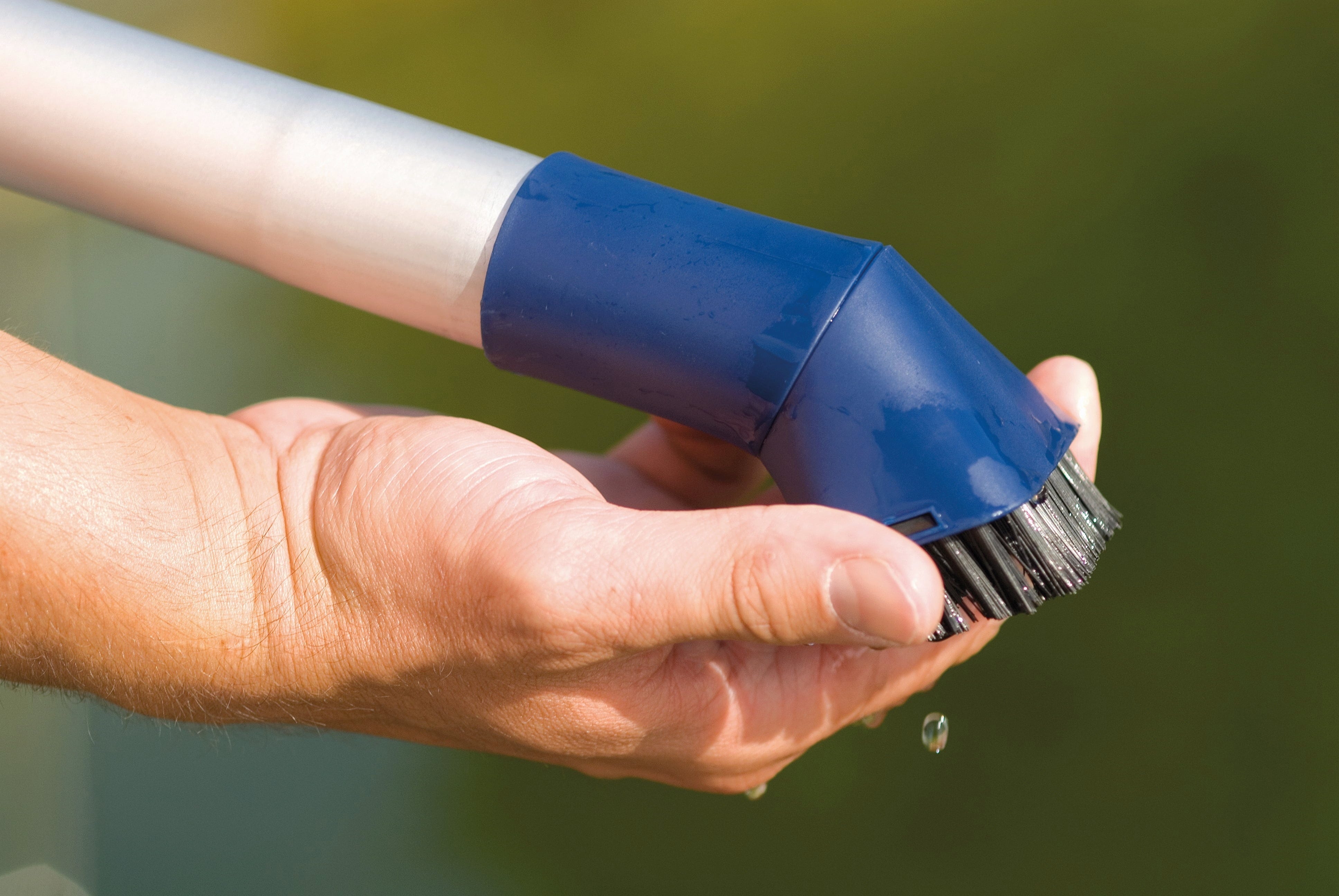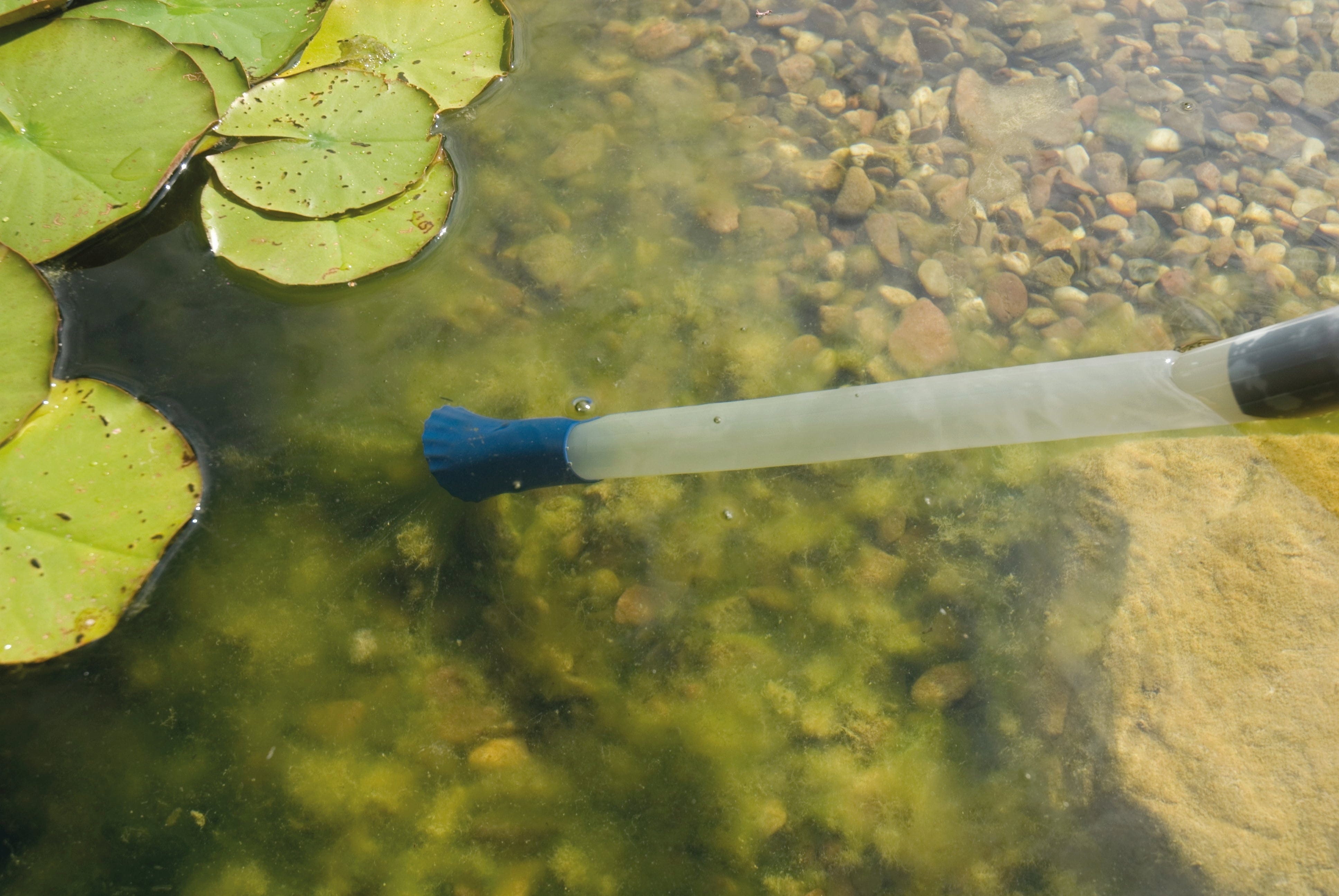 Le système à deux chambres repose sur deux cylindres de même taille : ils fonctionnent simultanément avec le remplissage et le vidage avec une puissance d'aspiration particulièrement élevée. Si vous souhaitez renvoyer l'eau nettoyée dans le bassin de jardin, un sac collecteur de saletés retient les particules plus grossières (> 1 mm). L'ensemble de têtes contient une tête d'aspiration humide, une tête universelle, une tête spéciale pour algues filamenteuses, une tête de surface et une tête à brosse.