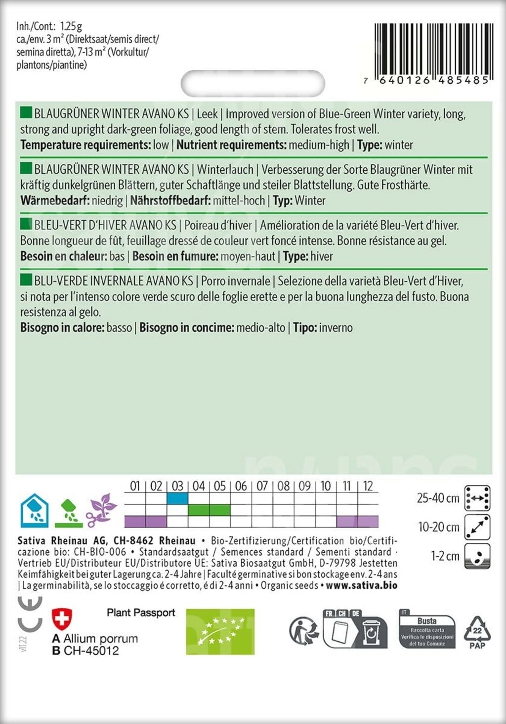Sativa Poireau d'Hiver Bio "Sélection Bleu-Vert d'Hiver", 1,25 g