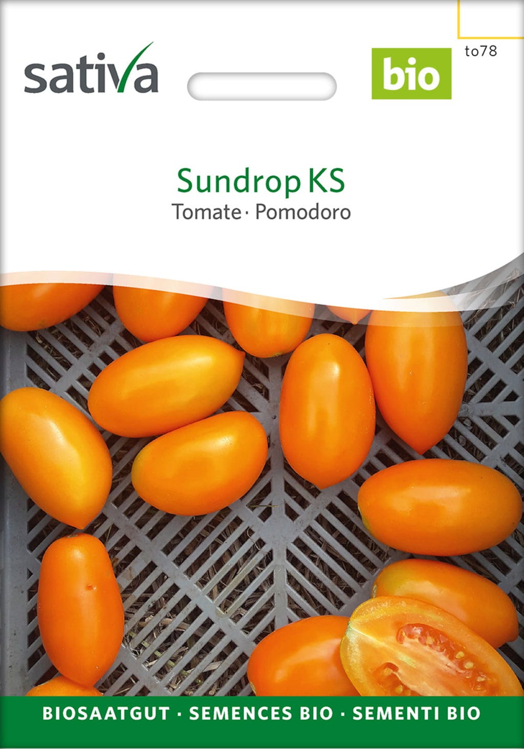 La sélection 'Sundrop KS' produit des tomates allongées, fermes et de forme régulière, avec une croissance généreuse en hauteur. Idéale pour la culture sous serre, elle offre un excellent rendement et une très bonne durée de conservation. Parfaite pour des plats froids et une qualité durable.