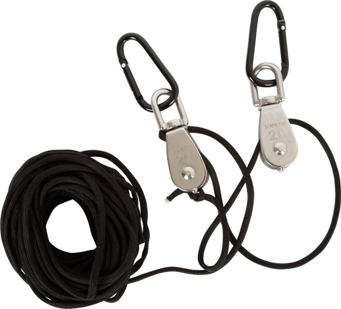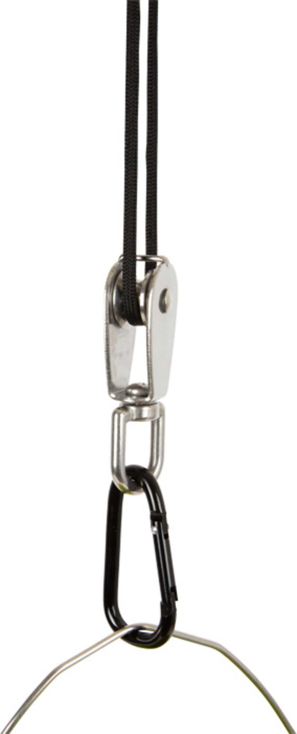 Que ce soit pour les cabanes dans les arbres, les cabanes de jeu ou les portiques d'escalade, cette ingénieuse poulie permet de transporter facilement des charges. Les petits explorateurs bénéficient ainsi non seulement d'un outil pratique pour leurs aventures, mais découvrent également de manière ludique le principe des forces en action. Une petite encoche sur la poignée du seau permet de maintenir le mousqueton en place, évitant ainsi que le précieux chargement ne bascule.
