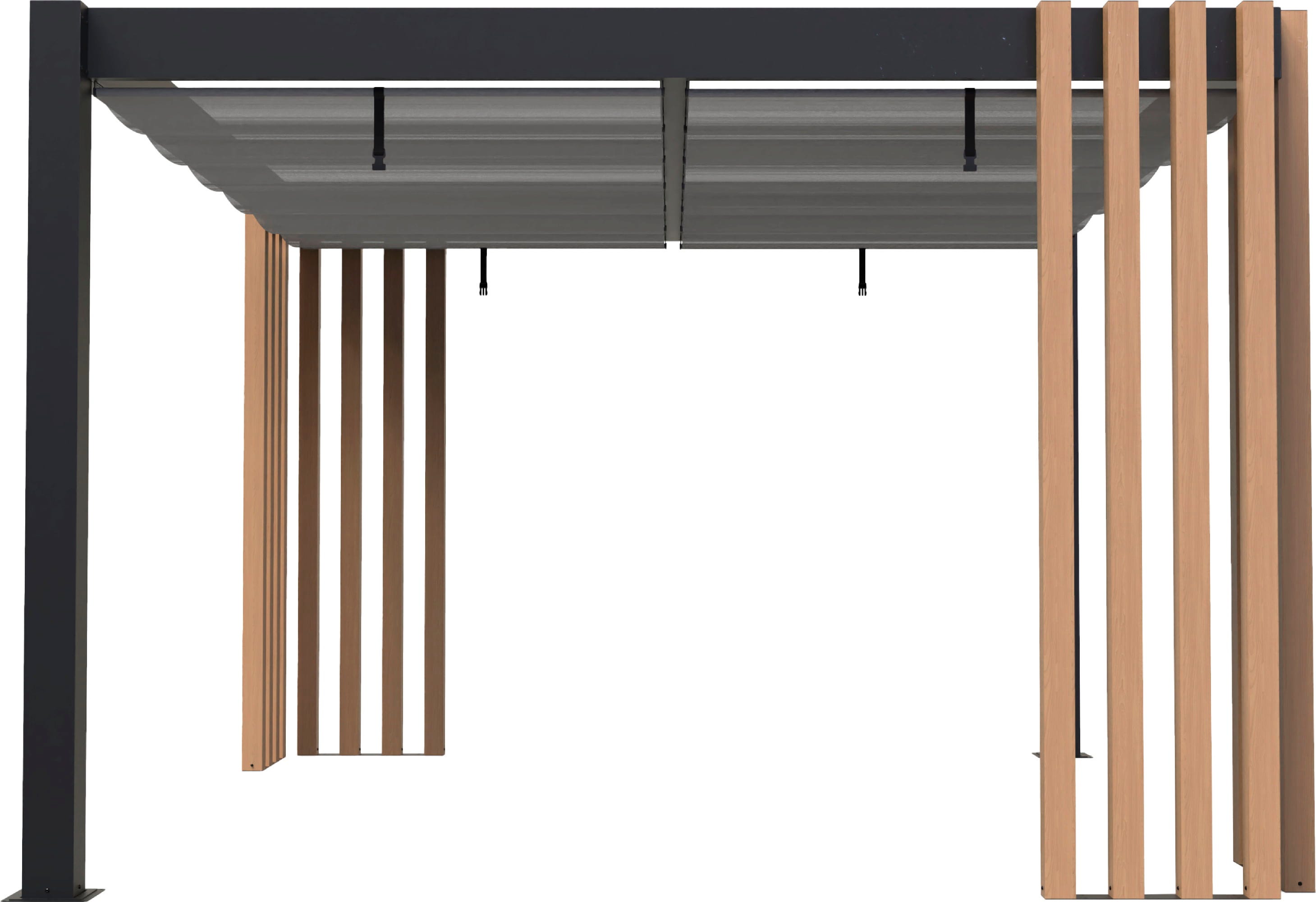 - Toit plat avec 2 voiles d’ombrage coulissants en Textilene enduit de PVC