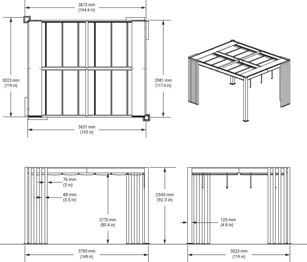 - Dimensions : 378 × 302 × 234,5 cm