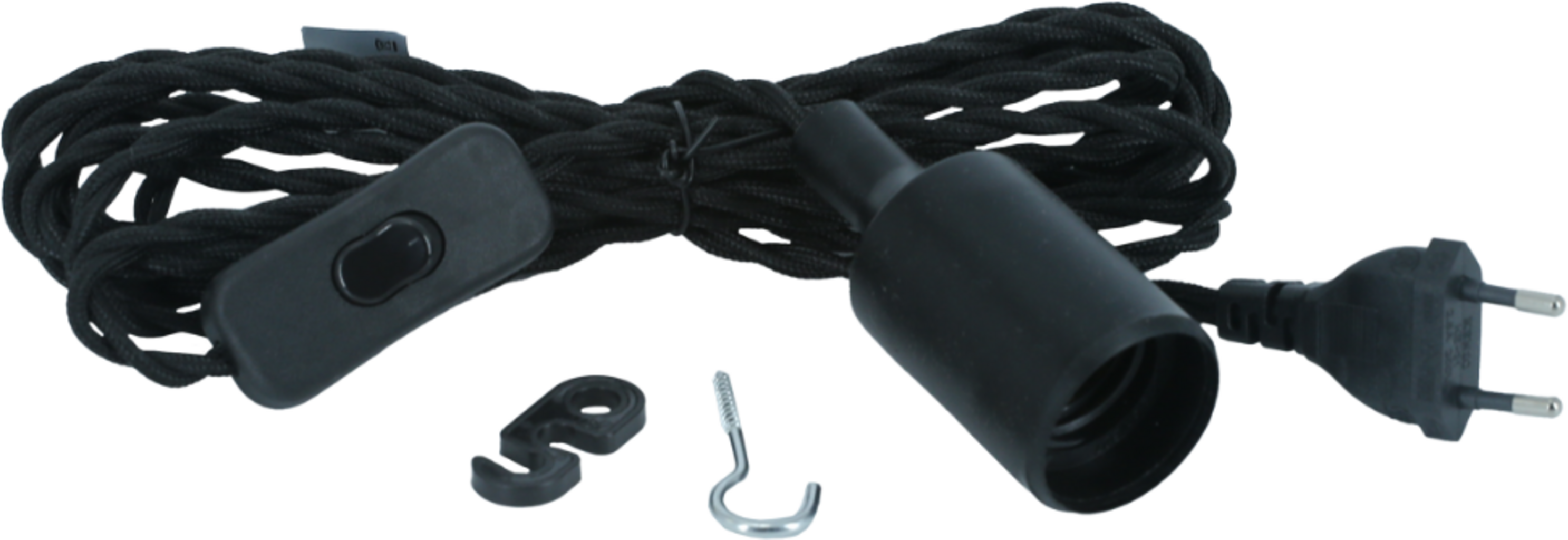 Venso Douille E27 HELIX avec Câble Textile de 4 m, Noir
