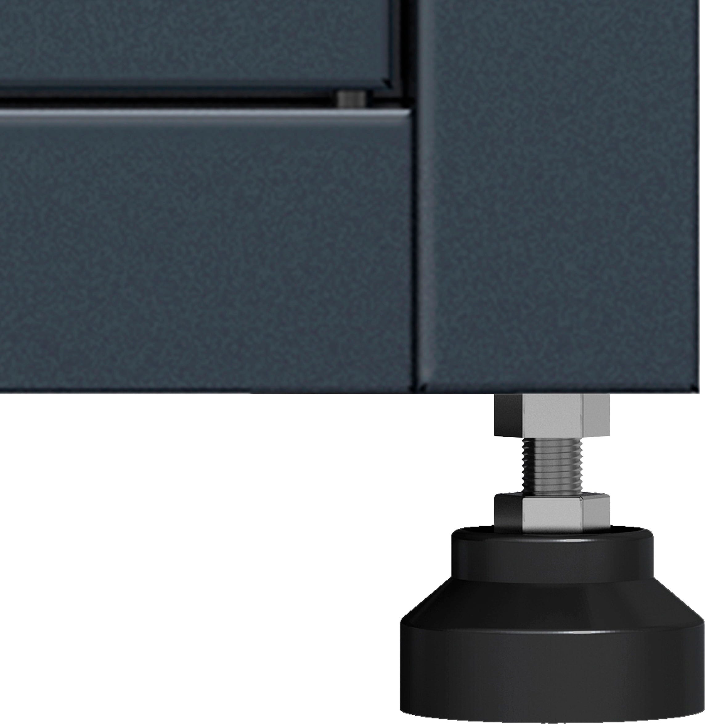 - Pieds réglables en hauteur pour compenser les irrégularités du sol